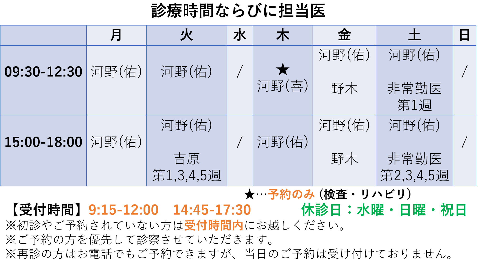 毎週木曜、午前は予約のみ(検査、リハビリ)、午後は予約外診療も行っておりますが、2025.6.12(木)は都合により、終日予約のみ(検査、リハビリ)とさせていただきます。